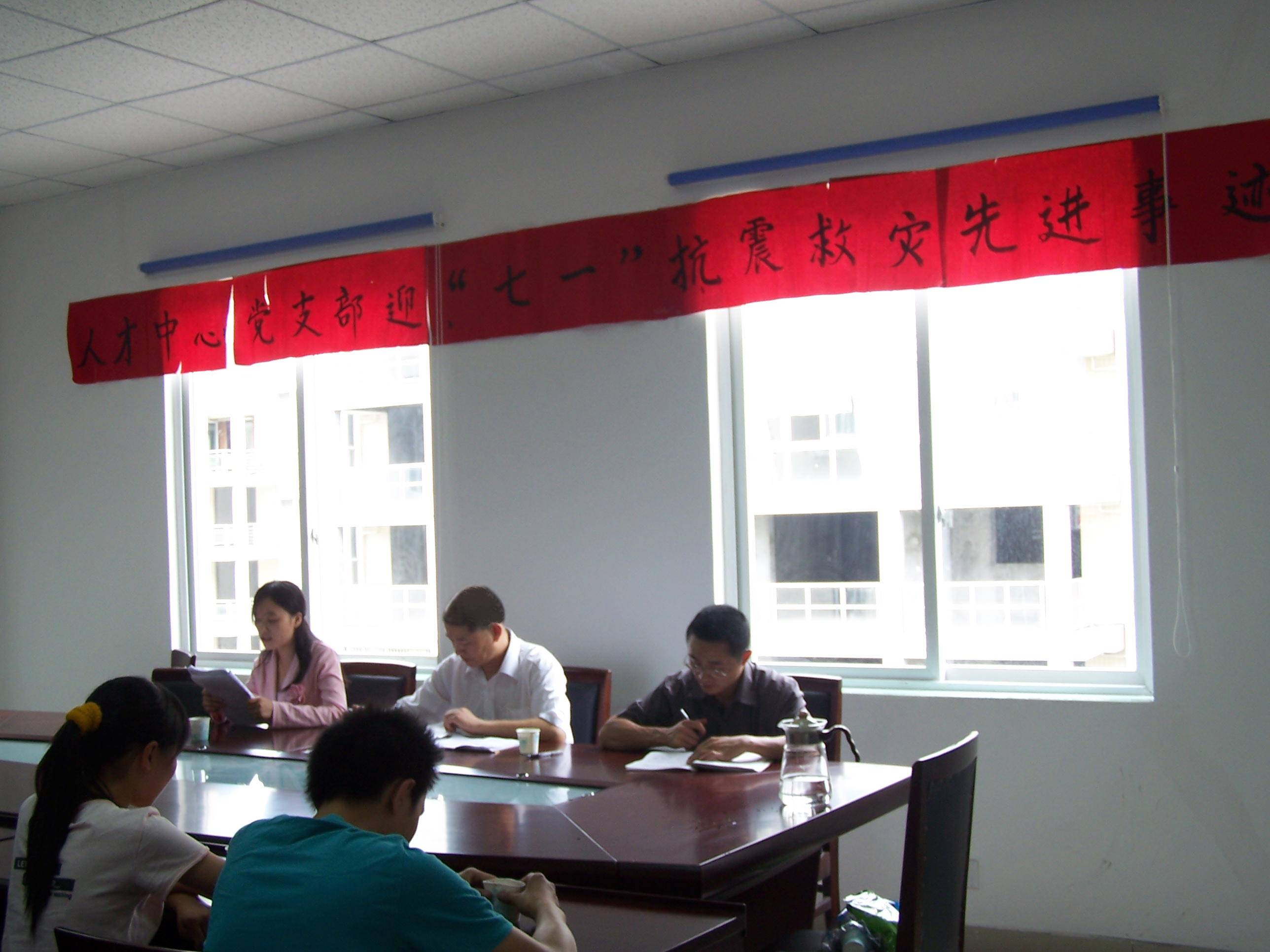 眉山人才網(wǎng)/洪雅人才網(wǎng)/彭山人才網(wǎng)/仁壽人才網(wǎng)/青神人才網(wǎng)/丹棱人才網(wǎng)/四川人才網(wǎng)/樂山人才網(wǎng)/眉山勞動(dòng)力市場 會(huì)議由人才中心流動(dòng)黨員支部郝書記主持,來自眉山各行各業(yè)的53名流動(dòng)黨員參加。會(huì)上通報(bào)了流動(dòng)黨員特殊黨費(fèi)的繳納情況,學(xué)習(xí)了北川中學(xué)校長劉亞春“師生鑄就愛的豐碑”、武警某師參謀長王毅“31小時(shí)生死挺進(jìn)震中汶川”、成都公安消防支隊(duì)支隊(duì)長孫國利“不放過每一個(gè)角落不放棄每一個(gè)生命”的感人事跡。