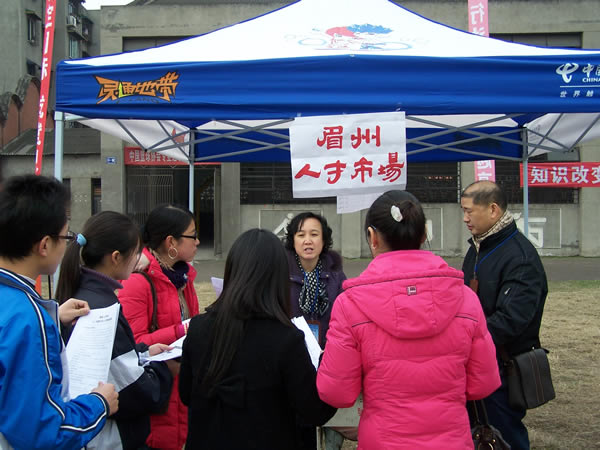 今年,該校采取了多項(xiàng)措施努力拓展畢業(yè)生就業(yè)空間,使雙選會(huì)取得了一些可喜變化,雙選會(huì)邀請(qǐng)本地規(guī)模人才市場——眉州人才市場與其聯(lián)合舉辦,眉州人才市場將雙選會(huì)情況及時(shí)在網(wǎng)站